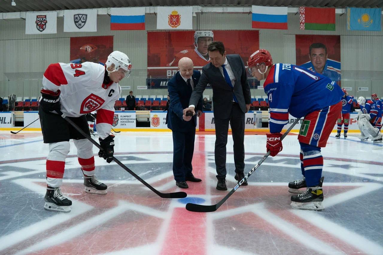 Почётные гости приняли участие в символическом вбрасывании с капитанами «АКМ-Новомосковск» и «МХК Молот».