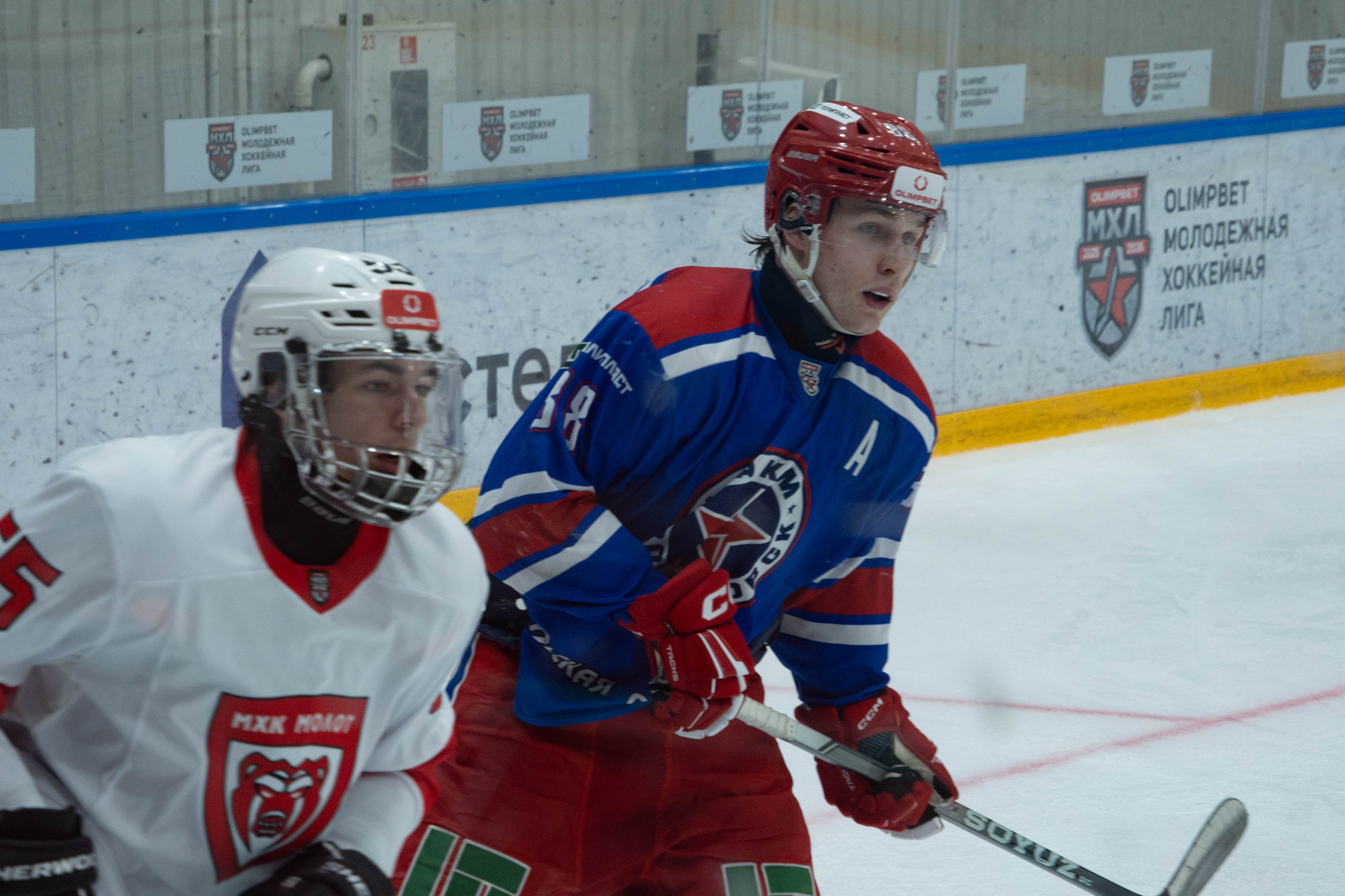 Игра началась с удаления «михайловцев»: за выброс шайбы отправился отдыхать Владислав Провоторов. «Молот» воспользовался большинством и открыл счёт – 0:1. «Красно-синие» вернулись в игру, но забросить долго не удавалось. Хорошие моменты были у Ивана Кажарина, Матвея Онищенко и Ярослава Домрачева. Нападающим не хватало точности, а защита гостей действовала надёжно. Однако в концовке периода Данил Красин с передачи Андрея Крутенкова сравнял цифры на табло. На перерыв команды отправились при счёте 1:1.